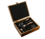 The five-piece Graze Wood and Metal Wine Set features a polished acacia wood case with metal accents for compact storage. Includes an ergonomic bottle opener, foil seal cutter, wine stopper and wine pourer.